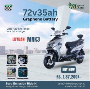 आजभन्दा करिब २७ बर्ष अघि चीनमा स्थापना भएको विश्व विख्यात ब्राण्ड लुयानका इलेक्ट्रिक स्कुटरहरुको नेपालमा पनि निक्कै माग बढिरहेको छ ।