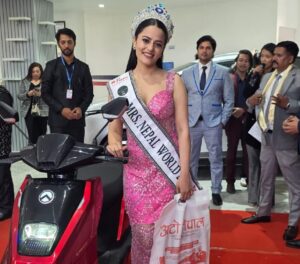 मिसेस नेपाल वर्ल्ड २०२५ की विजेता रक्षा पन्तलाई तपाइकोबजारको प्रायोजनमा एक इलेक्ट्रिक स्कुटर हस्तान्तरण गरिएको छ।