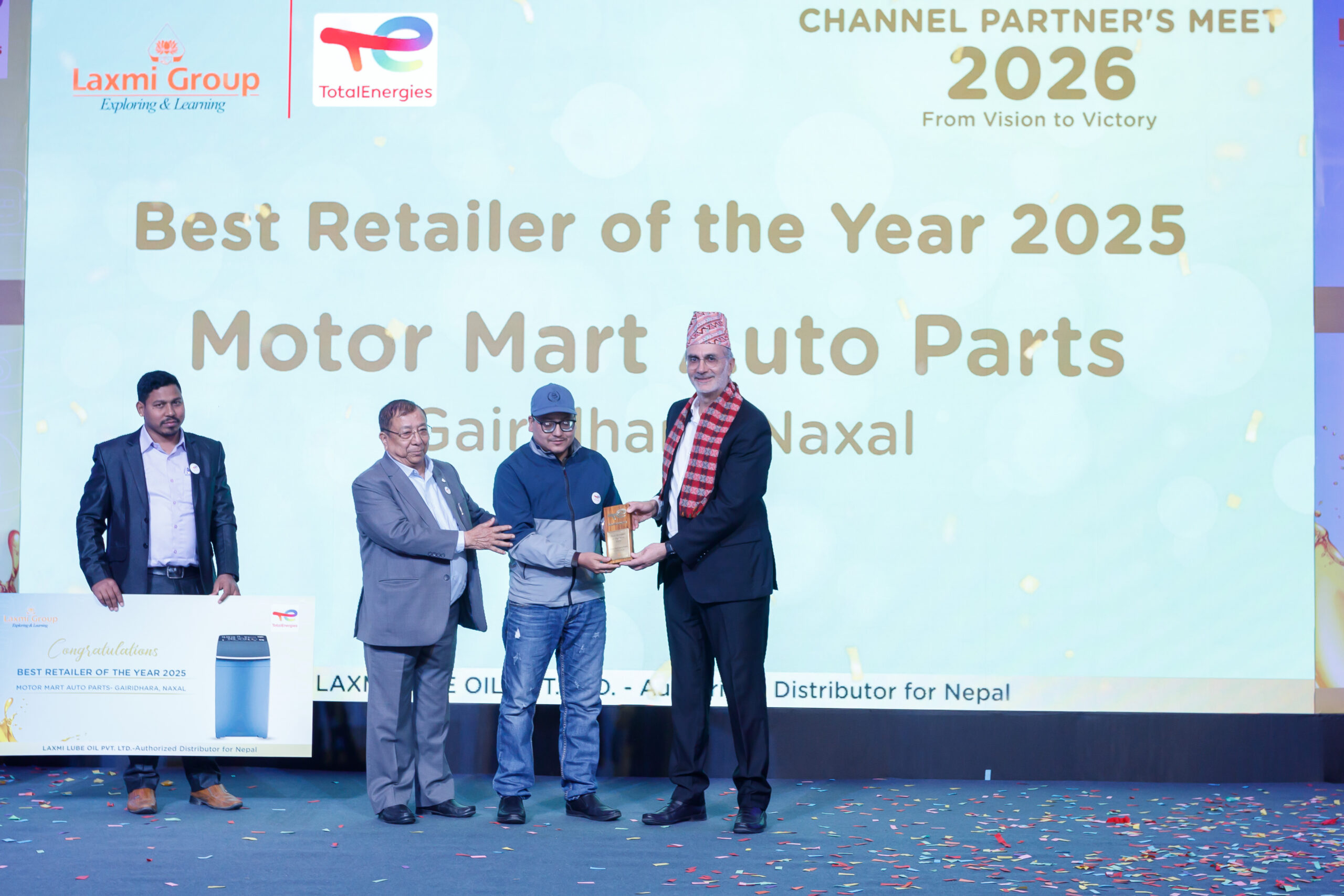 त्यसैगरी, लक्ष्मी ल्युब आयलले ‘डिलर अफ द इयर २०२५’ का रूपमा जोरपाटीस्थित शंकर यमुना अटो पार्ट्स, ‘रिटेलर अफ द इयर २०२५’ का रूपमा नक्सालस्थित मोटर मार्ट अटो पार्ट्स तथा ‘बेस्ट ओईएम/फ्लिट अफ द इयर २०२५’ का रूपमा एलआई सर्भिसलाई घोषणा गरेको छ।